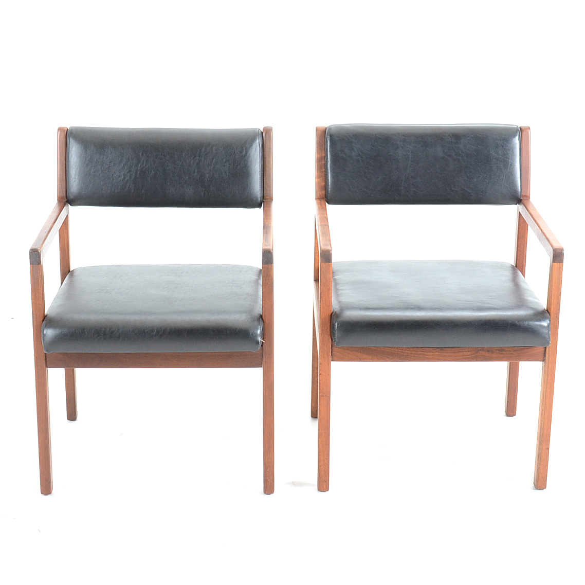 Pair Of Walnut And Leather Arm Chairs By Taylor Chair Company