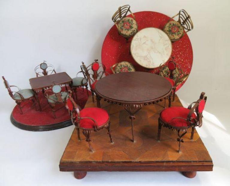 Vintage Tramp Craft Art Tin Can Scroll Chairs Tables Lot Doll House Furniture