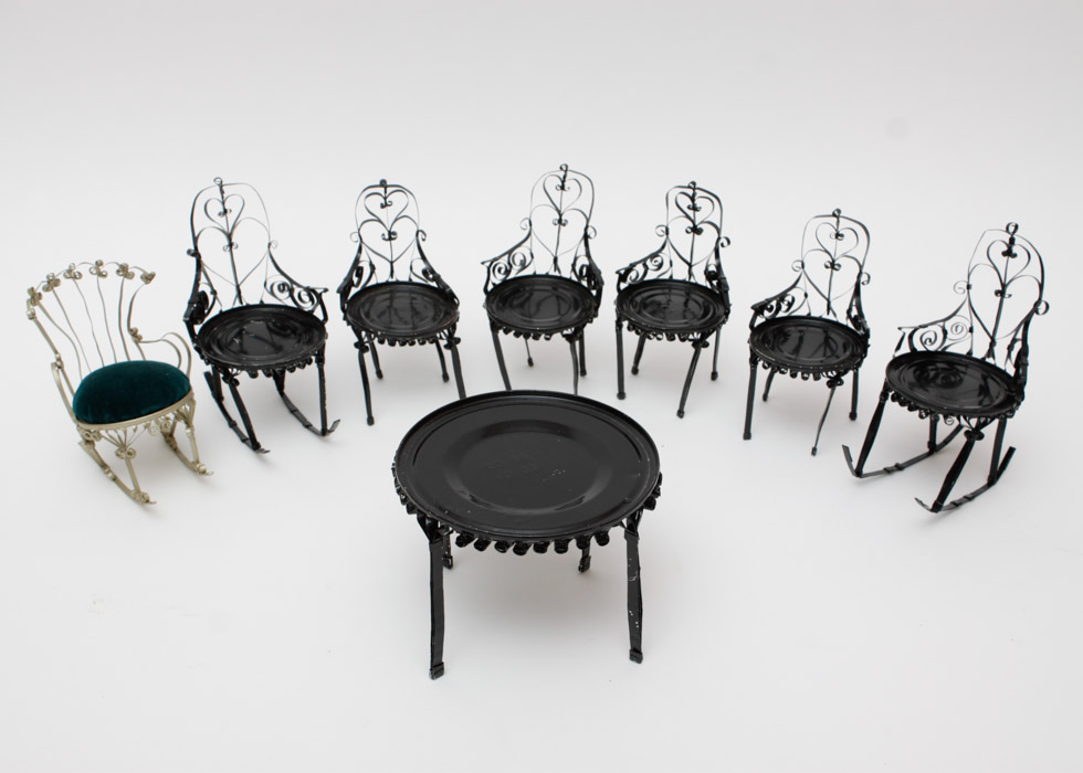 Tin Can Doll Furniture 5 Pieces Table Chairs Rocker Folk