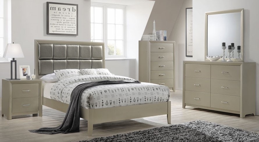 Alpine Furniture Charleston Queen Panel Bed With Upholstered Headboard Footboard 1500 01q