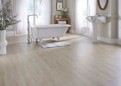 White oak vinyl plank flooring. This product features enhanced ceramic bead surface coating for scratch resistance. Wayfair even offers flooring with multiple installation types to make installation easy for homeowners. Vinyl flooring is cost effective easy to clean and simple to install.