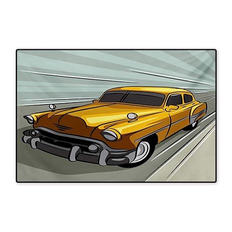 Amazon Com Cars Floor Mat For Kids Speeding Yellow Vintage