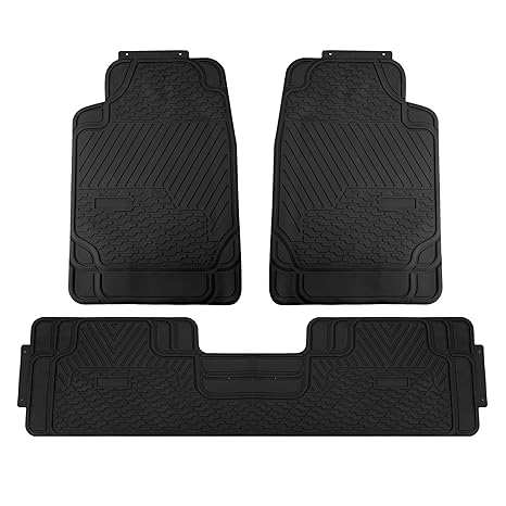 Black Rubber Floor Mat 3 Row 4 Piece Trimmable All Weather