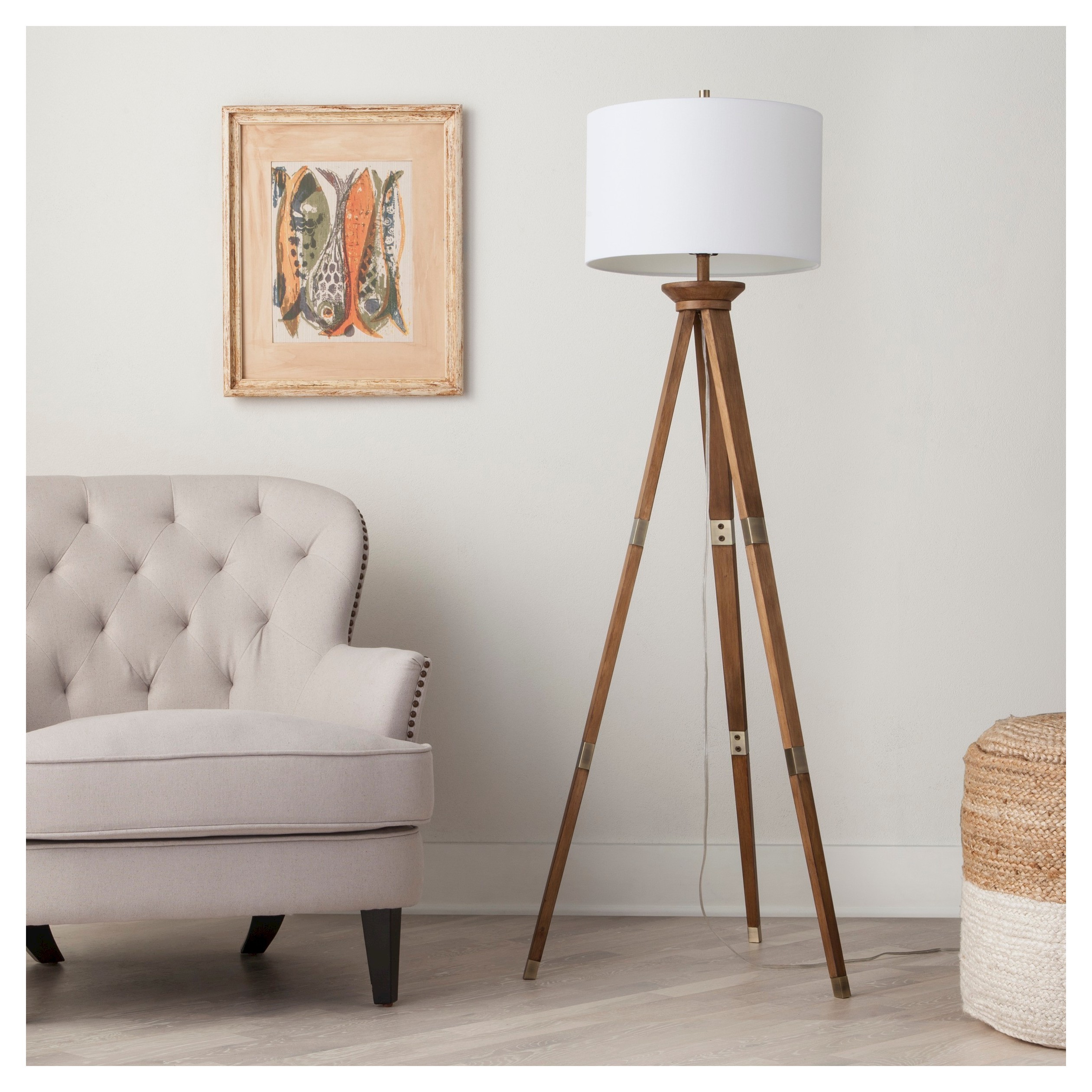 Tripod Floor Lamp Base Target With Drum Shade Natural Wood