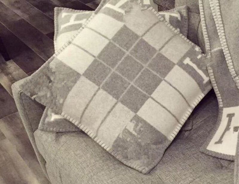 Fast Shipping Ems Ups Hot Brand Name Hot Selling 2018 H Throw Wool Pillow Gray H Wool Cushion 45 45cm Home Travel Autumn Winter Home Textile