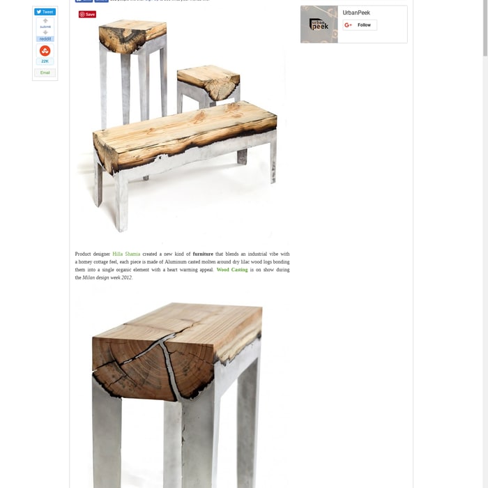 We are currently improving our website please contact us directly at the following media. Wood casting furniture combining cast aluminium and wood. To create these unprecedented pieces shamia poured molten aluminum onto logs of raw cypress and.